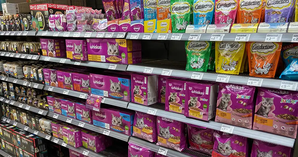 Herkenbare merken: Whiskas, Felix, Friskies, Just Russel, Purina One, Gourmet, Kittekat, Real Nature (Maxi Zoo), Juliet (Aldi), Companino (Carrefour), Nutri Expert (Tom&Co), Coshida (Lidl),…