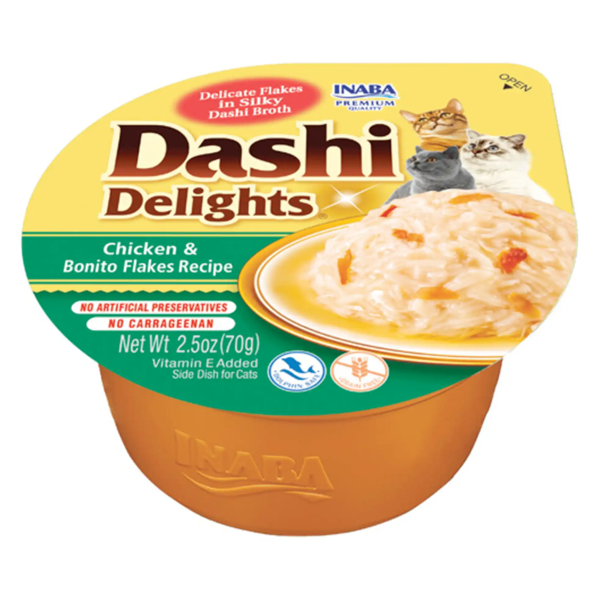 CIAO Dashi Delights Kip/Bonito van Inaba brengt de authentieke smaak van Japan naar de jouw kat, kitten of poes. Gemaakt met een traditionele dashi-bouillon van gedroogde bonitovlokken (katsuobushi) – een ingrediënt dat al eeuwen wordt gewaardeerd in de Japanse keuken – gecombineerd met zorgvuldig geselecteerde kipsnippers. Het resultaat? Een onweerstaanbaar smaakexplosie waar je kat zijn pootjes bij aflikt!