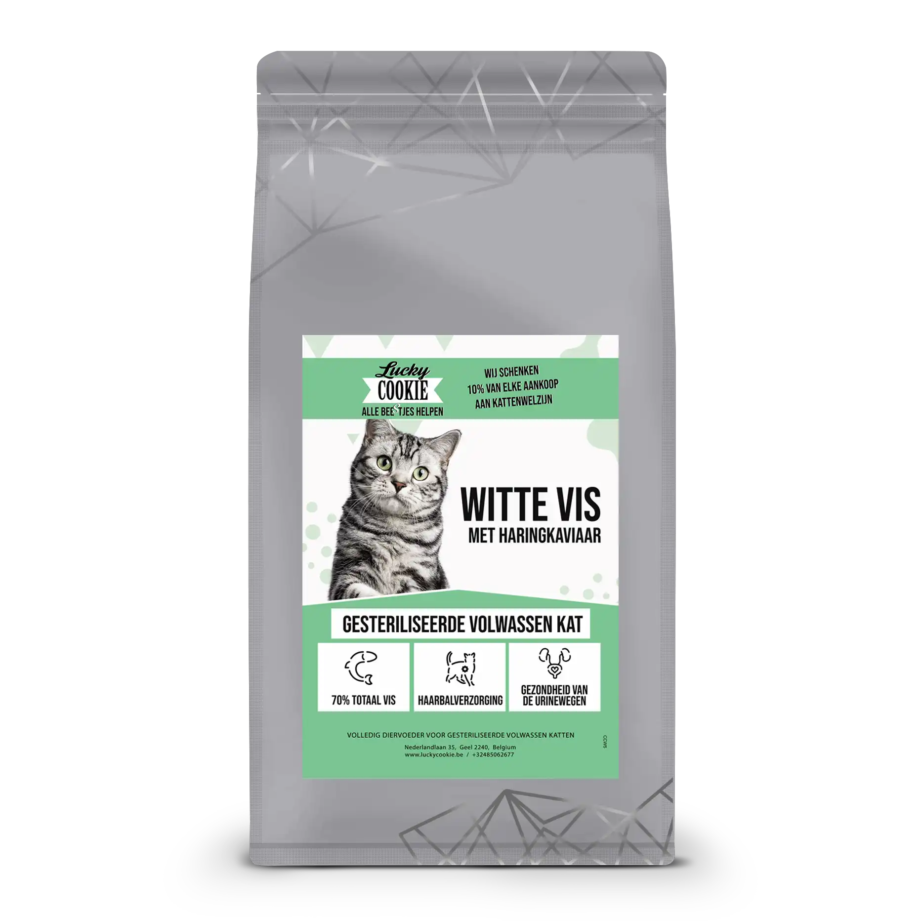 Lucky Cookie Fijnproevers Graanvrij kattenvoer voor steriele katten – Witte Vis met Haringkaviaar – 5kg