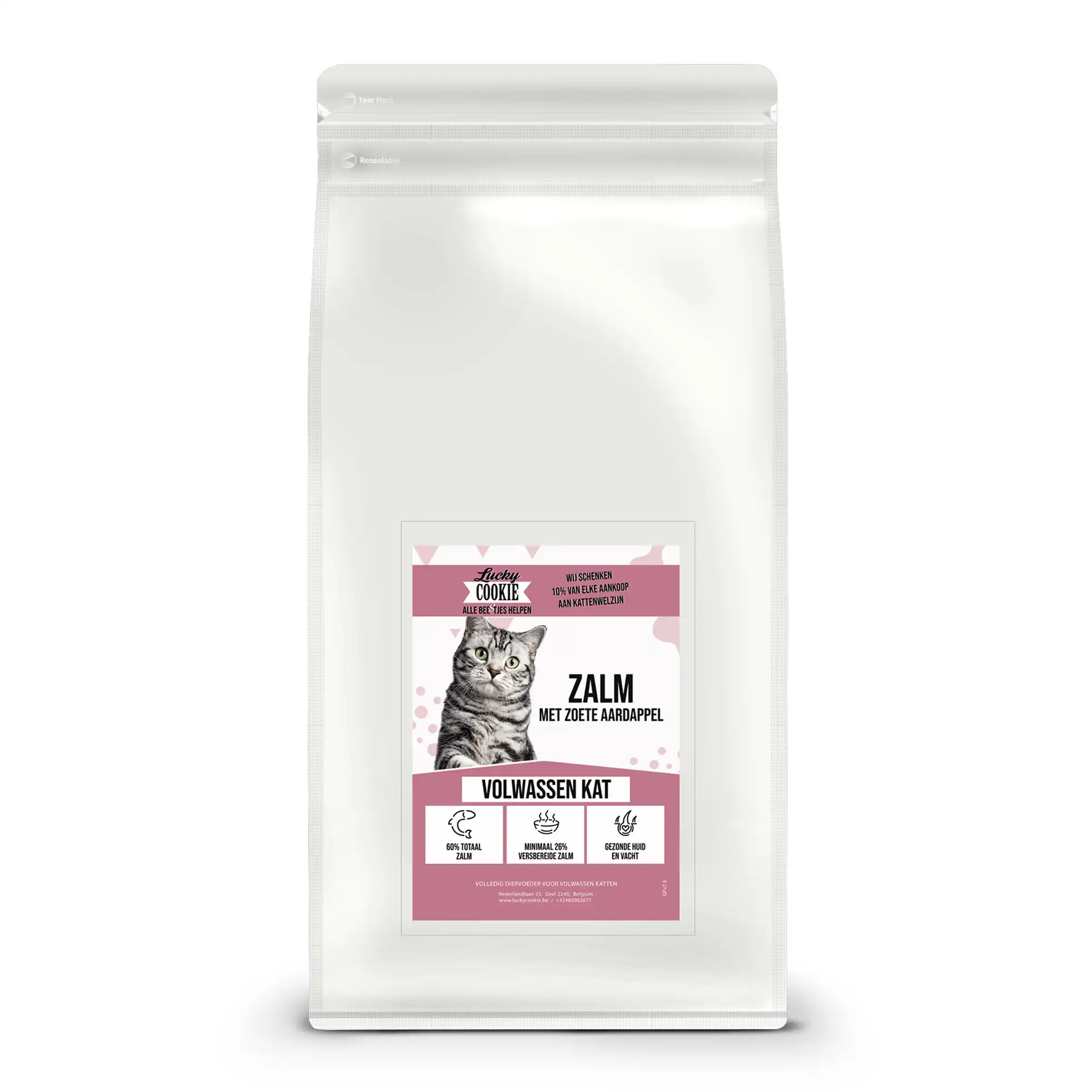 Graanvrij droogvoer voor volwassen kat – Zalm met zoete aardappel – 2kg