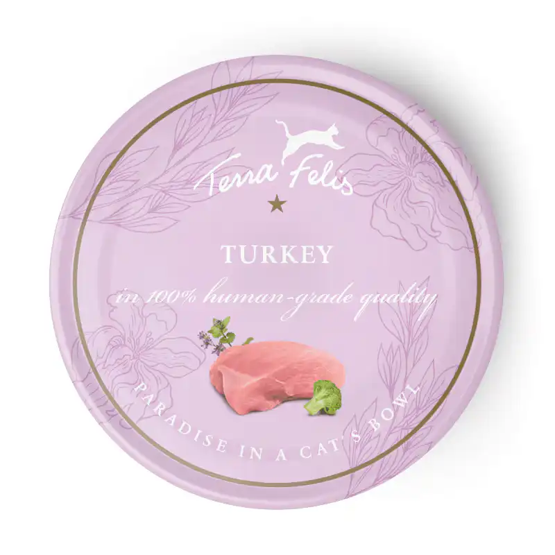 Kalkoen is de keuze voor katten die op gewicht moeten letten of een licht verteerbare maaltijd nodig hebben. Terra Felis Kalkoen is een single protein menu met 90% pure kalkoen in verschillende delen – hart, lever, huid en spiervlees voor complete voeding. Mager, voedzaam en perfect voor gevoelige magen. Geproduceerd nabij München volgens strikte Duitse kwaliteitsnormen.