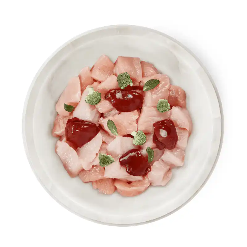 - Gevarieerde kalkoendelen – hart, lever, huid en spiervlees voor complete voeding