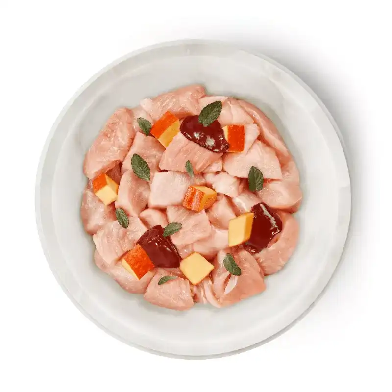 “Gevogelte lovers, dit is jullie menu! Lucky is altijd al fan geweest van kip, maar die kalkoen erbij maakt het nóg lekkerder – het geeft net dat extra iets. Cookie vindt het geweldig dat er zoveel verschillende delen in zitten: hart, maag, lever, vel, spiervlees… elke hap heeft een andere textuur en smaak. Die pompoen maakt het ook nog eens lekker zacht en makkelijk verteerbaar. En met dat lagere vetgehalte voel je je niet zwaar na het eten – gewoon lekker voldaan. Perfect als basisvoer waar je nooit op uitgekeken raakt!”