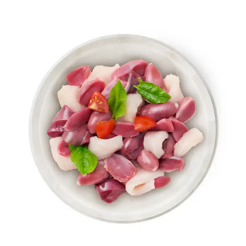 - Gevarieerde kippendelen – kippenhart, kippenmaag, kippenvel, kippenspiervlees en kippenlever voor een complete voeding