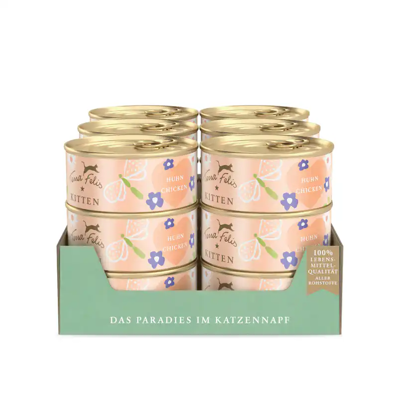 Perfect als basisvoer of te combineren met andere Terra Felis kitten smaken. Altijd vers water beschikbaar houden. Op kamertemperatuur serveren voor de beste smaakbeleving.
